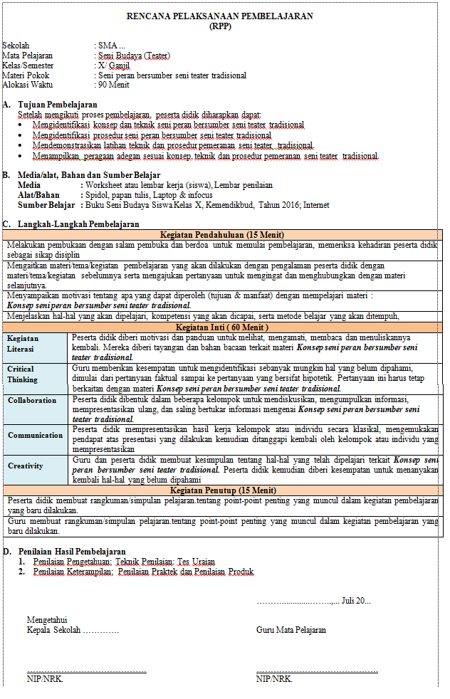 Rpp bahasa inggris berkarakter kelas 1, 2, 3, 4, 5 dan 6 sd. Mempra mempraktikka ktikkan n berbaga berbagaii keteram keterampilan pilan permainan permainan. Rpp 1 lembar smp seni budaya merupakan salah satu perangkat mengajar yang dibutuhkan setiap guru mata pelajaran seni budaya dalam perangkat seni budaya tahun 2020 meliputi rpp 1 lembar seni budaya kelas 7 semester 1 dan semester 2, yang disusun berdasarkan silabus seni budaya. Pada masa pandemi guru tetap harus membuat rpp. Makalah fisika kls x semester 1.